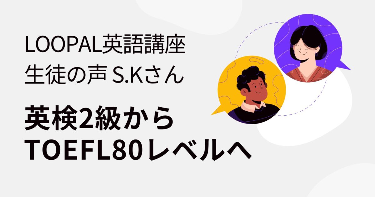 2025年12月28日 / 最終更新日時 : 2026年1月5日 MANA PARTNERS 体験談 S.Kさん LOOPAL英語講座 生徒の声 英検2級からTOEFL80レベルへ 英検2級レベルから、TOEFL80相当(Duolingo110)へ。S.Kさんは、英語学習の方法そのものを見直すことで、英語力を大きく伸ばしました。 受講前は、過去問を解く以外の勉強法が分からず、半年以上努力しても成果が […]