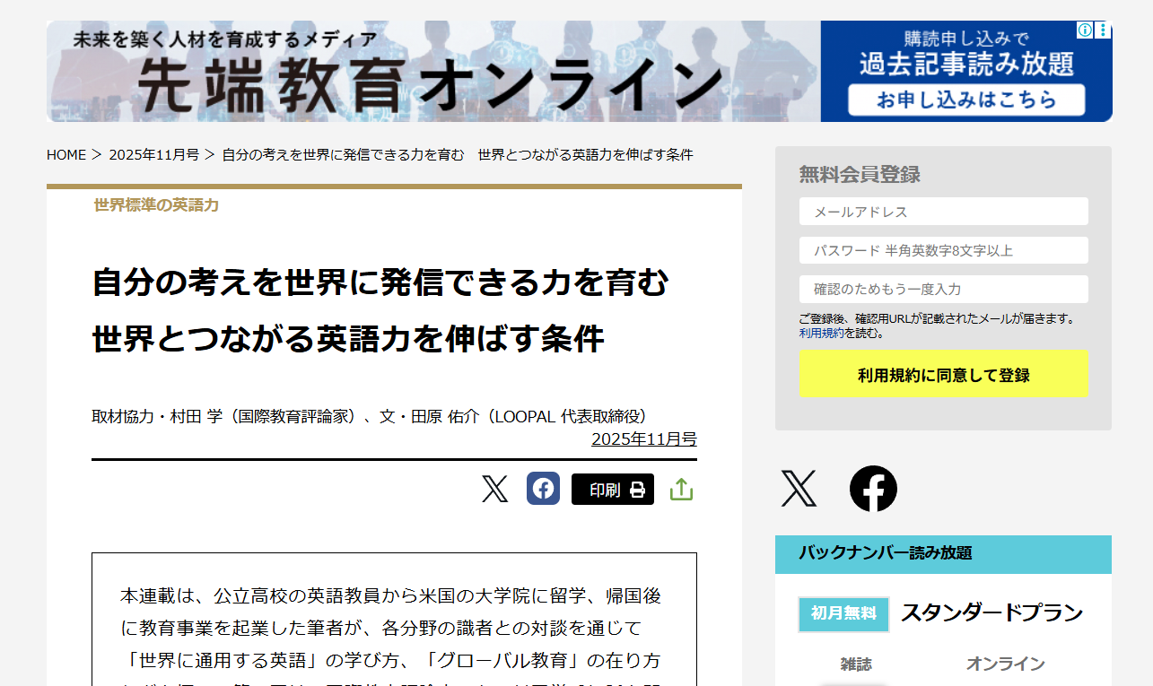 【メディア掲載】先端教育オンライン■世界標準の英語力VOL.4