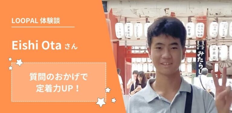 今回は英語学習コースを受講しているLOOPAL生のEishi Otaさんに、LOOPAL講義の感想や受講前と今ではどのように変わったのかについてお聞きしました。 ぜひLOOPALの英語講座を受講するか迷っている方は、先輩 … 続きを読む LOOPAL英語講座 生徒の声: 毎日50語の単語学習も習慣化&効率的に