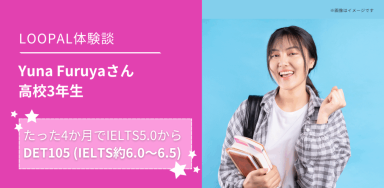 LOOPAL英語講座 生徒の声:たった4ヶ月でIELTS5.0がDET105 (IELTS 6.0〜6.5)に
